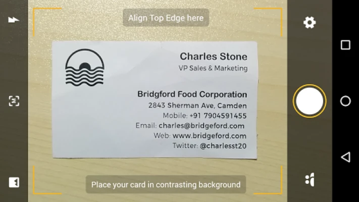 Snap a photo of a business card using your Android camera and let Card Scanner extract all necessary information.