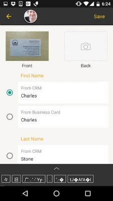 * The scanned business card is attached to the CRM record directly