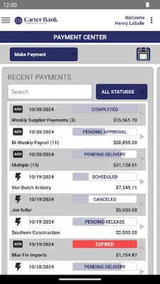 Key Features: -View account information, check images and transaction history. -Transfer money between Carter Bank accounts -Receive email and text alerts for incoming deposits, payments and more* -Easily review ACH, wire transfer and Positive Pay Exception notifications