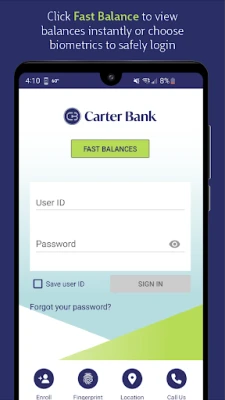 Refer to the Online Banking Agreement at https://www.carterbank.com/disclosures for the terms and conditions for accessing your bank accounts through Carter Bank mobile