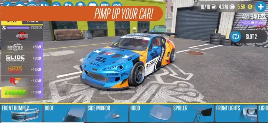 - Tune the engine, turbine pressure, gear box, brakes, locking differential. You can show some quality drift only if you have your car fine tuned to your needs.