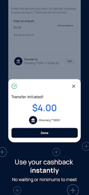 Your cashback will be instantly added to your account. No exclusions, and no waiting period.