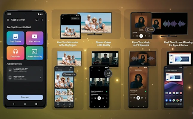 Mirror your phone screen in 4k quality with Cast TV via AirPlay protocols.