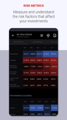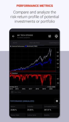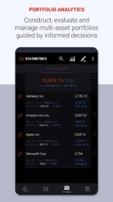 Statmetrics is a comprehensive solution for stock market analysis, portfolio tracking and analytics, investment management and research. Stay on top of the markets and access global market news, economic and real-time financial data from global stock exchanges. Forecast market trends and cycles with advanced charting and technical analysis. Construct, backtest and manage multiple portfolios and streamline your risk management with the integrated portfolio analytics solution. Analyze the fundamental and quantitative characteristics of portfolio or potential investments and gain insight into the risk-return profile of your investments. Track overall performance of your portfolio across all accounts in one place and evaluate your investment strategy. Enhance your investment research, explore investment opportunities and identify hidden risks that affect your investments with a comprehensive suite of analytical tools and financial models.