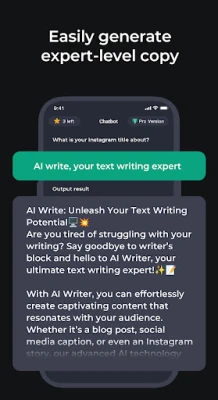 Welcome to improve your writing skills through our intelligent writing assistant. This application is designed for the convenience of writers. With the support of artificial intelligence, our application provides personalized advice and storytelling to help you write better, faster, and more efficiently. This application can help you complete everything from inspiration to creativity, and provide suggestions for improvement in your writing! Whether you are a student, professional, or someone who wants to improve your writing skills, Chat AI Writing will provide you with assistance. With its powerful artificial intelligence technology, this application can help you complete everything from proofreading, grammar checking, to improving writing suggestions. Open the application, type or paste the theme you need to write, and then Chat AI Writing to complete the remaining work. In a few seconds, you will have a beautiful and error free copy that can be shared with the world. Through our free trial, you can enjoy a 3-day free period and unrestricted access to all features, including writing personalized status, and more. So why wait? Download Chat AI Writing today and start writing like a professional!