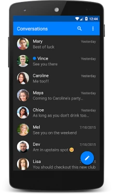 Chomp comes with a bunch of great features, notably a passcode lock, privacy options, scheduled SMS sender (reminders, birthday wishes), stop a text while sending, pin favs to top, backup, blocklisting / SMS blocker, signatures, text snippets, quick reply popup (even on lock screen), multi-select picture gallery, dual sim, better MMS and GROUP messaging and much more....