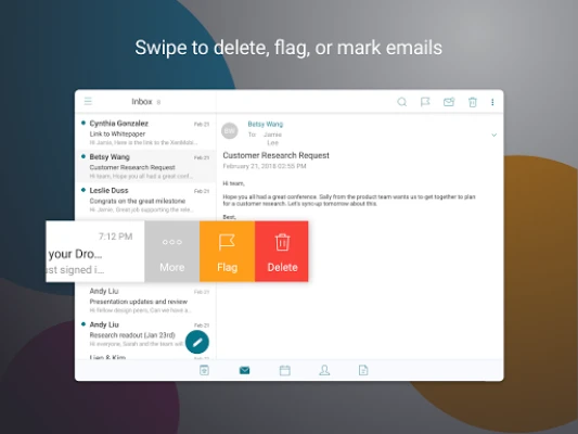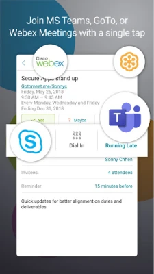 Be it an enterprise or a BYOD program, you can confidently turn your mobile device into a business tool - managing emails from multiple accounts, calendars (business and personal), and contacts. All without compromising your personal data. The app works seamlessly with Citrix Files, Citrix QuickEdit, Skype for Business, and GoToMeeting.