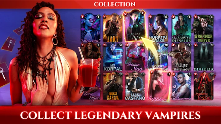 Experience breathtaking, photo-realistic card art blending Gothic tradition with modern fashion. Your collection is stylish as it is strategic. Lifelike vampire characters blend modern fashion with classical Gothic elements. Unlock and collect limited cards and special edition variants. Showcase both taste and strength on the card battle board.