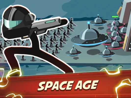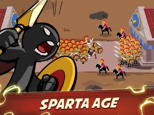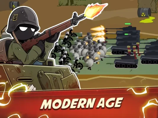 - Start with primitive caveman warriors and dinosaur riders in the Stone Age. - Advance to the Iron Age with legendary Spartan warriors. - Conquer the Modern Age with unstoppable tanks and futuristic robots. - Utilize a unique food-based resource system to strategically summon and strengthen your stickman troops.