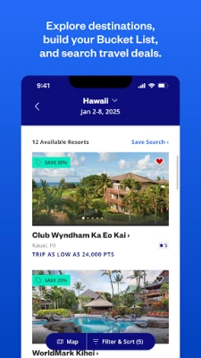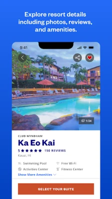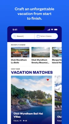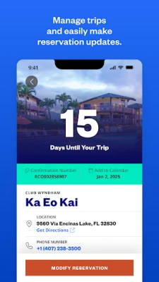Timeshare booking is easier than ever before with the Club Wyndham App. Browse 240+ resort locations worldwide and book your Club Wyndham vacations with just a few taps. Plus, manage your timeshare ownership details and keep track of your points right from the palm of your hand. The Club Wyndham app has everything you need to plan, book, and manage your vacation ownership on the go so you can focus on enjoying vacation moments.