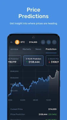 Check algorithmically generated short- and long-term price predictions for Bitcoin and virtually every other digital asset trading in the market. Find out where your favorite cryptocurrency could be headed next based on technical indicators and historical market data.