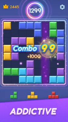 Dive into a fun world of color blast excitement where you can play casual block games for free. Keep an eye on the next blocks coming up. If you plan ahead, you can clear lots of lines at once and get bonus points! It's like a tetris block puzzle party. Combo Block blast no ads means you can focus on solving puzzles without any distractions.