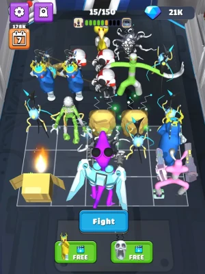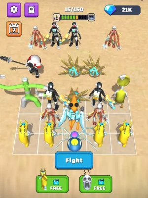 Quickly synthesize your monsters into the giant. The higher the level of the monsters, the stronger the attack and defense. This is the most important skill in this game, please master it. Reasonable placement of monster with different attributes can help you win easily. React and think quickly. Use your strategy and tactics to win the battle and move to the next level.