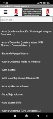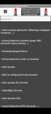 Esta aplicación facilita una lista de frases o comandos de voz que puedes utilizar con el Asistente de Google.