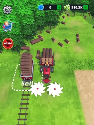 Cut Trees: Start by cutting trees and selling lumber to earn money. Upgrade your harvester to cut trees faster and more efficiently.