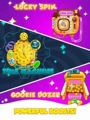 - You have 2 new powerful boosts at your fingertips: The Lucky Spin with a free daily spin, and the Time Machine which speeds up time AND your cookie production!