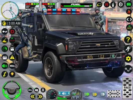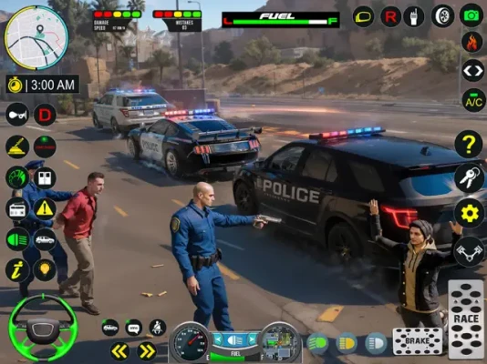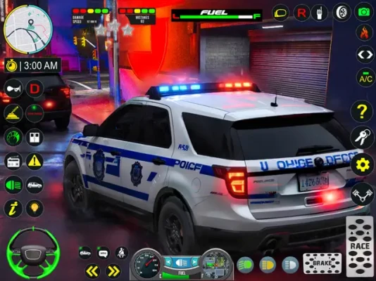 Multiple Features of Cop Car Chase include: Multiple Police Cars. Act as an Undercover Cop and a Police Officer Walk into the police station to get missions and drive to save the city Free Mode Different Duty Hours. Night and Day.