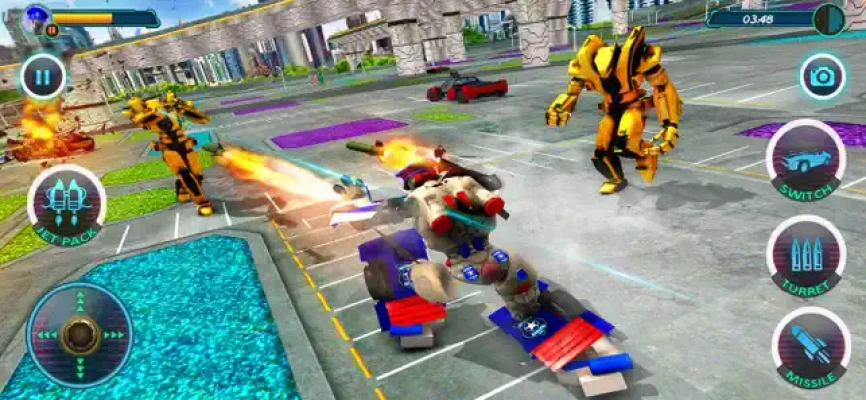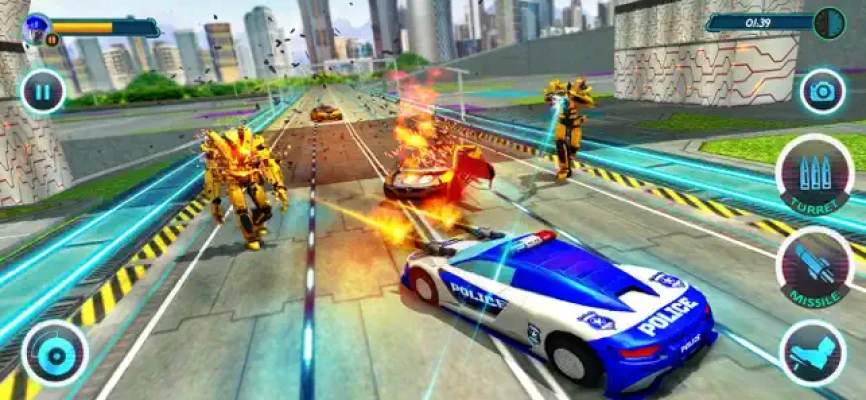 Save humankind from evil machines. Transform robot car into a flying robot to use combat powers like shooting, punches, firing missiles and car destruction skills.