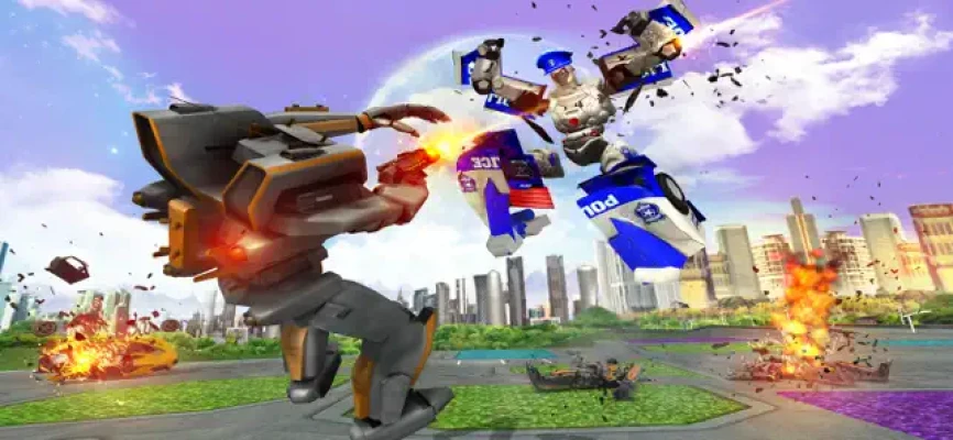 Cops Robot Battle is Robot fighting game in the new city and the whole organization of evil robotic powers is fighting to destroy the city. Let's fight back with flying war machines in the robot battle city to demolish all rebellious red robots.