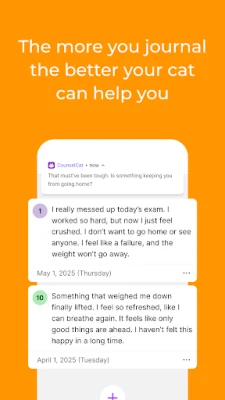Whether you're looking for a confidential space to talk, a tool to manage your anxiety, or a guided mental health journal, CounselCat is here to help you feel calmer and more in control.