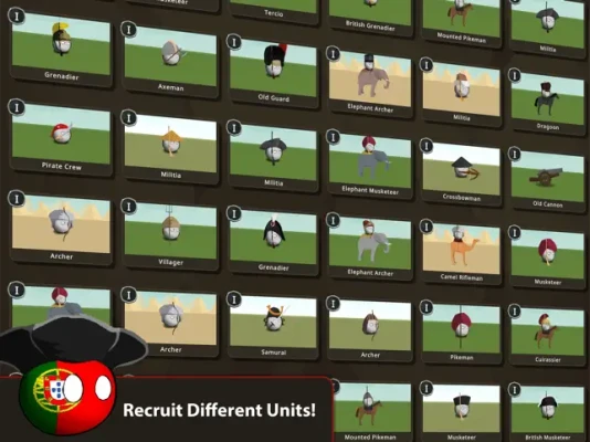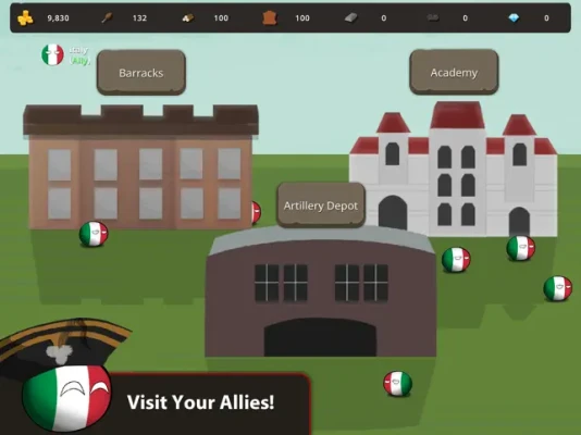Unlock and upgrade special units unique to each country. Build infantry, tanks, artillery and more in your Barracks and Artillery Depot. Each countryball nation has unique military units and strengths – develop your forces and prepare for new units coming in future updates.