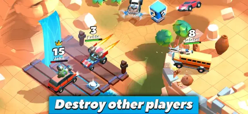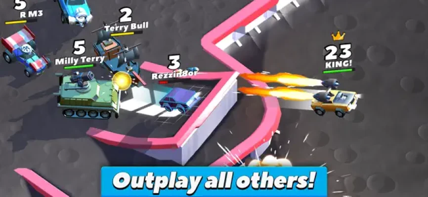 Welcome to Crash of Cars, a REAL-TIME MULTIPLAYER game where your goal is to collect as many crowns as possible before getting destroyed. Use power-ups and smash into opponents to destroy them; then swoop in and take any crowns that they drop. Be careful though, the more crowns you collect, the bigger your bounty becomes – making you a bigger target for other players to destroy!