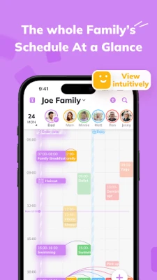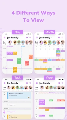 View shared schedules & activities of all family members -- by day, week, month, and task.
