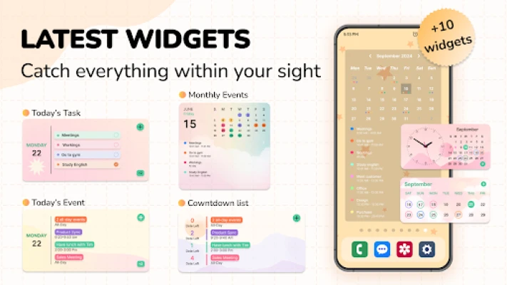 - Calendar Widget with many kinds (calendar by month, calendar by day, calendar by todo, memo) and can change color