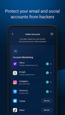 Real-time monitoring for identity theft, data breaches, dark web exposure, and credit changes, plus recovery support.
