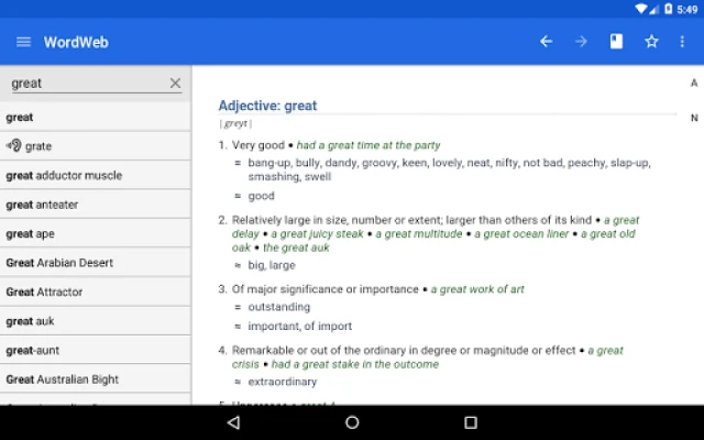 The free offline English dictionary and thesaurus with synonyms, related words and great search - and no adverts. Audio pronunciations are available with the separate Audio Edition app.