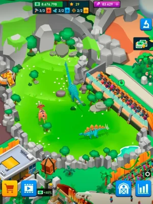Improve your expedition team as long as you can reinvest your park earnings and find different dinosaurs like Allosaurus, Quetzalcoatlus, Triceratops, Stegosaurus, Brachiosaurus, Iguanodon, or even T-Rex! Numerous species are waiting for your explorers in the mysterious forest to be friendly captured. Bring them to your Dinosaur World, and take care of them!