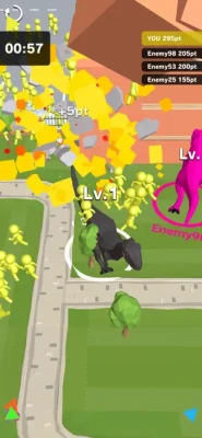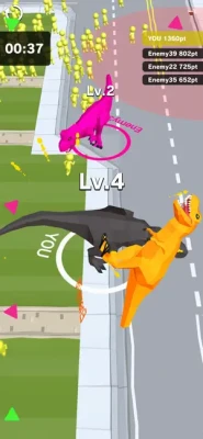 What you have to do is just to swipe to control the dinosaur. Destroy the city and eat human more than your opponents, and be a winner!