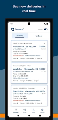 Dispatch works with Delivery Pros who approach their work with reliability, communication, and care. You're part of a growing delivery network that connects you with delivery opportunities tailored to your vehicle, skills, and goals.