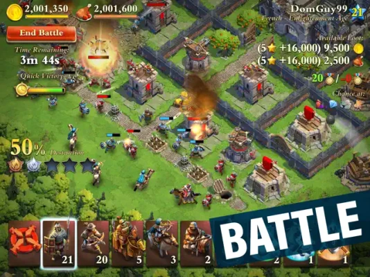 Strategize your way to victory in DomiNations, conquer civilizations old and new, across every age of history and defeat your enemies in epic real-time simulation games. Build your empire and protect it as it grows from a small village to a thriving metropolis. Bring your army to life to defeat enemies threatening your empire with strategy and tactics. Battle as one of the great civilizations from the history of the world.