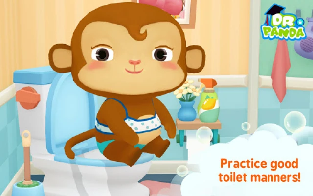 In Dr. Panda Bath Time, help Dr. Panda's friends get cleaned up and watch them express their bright personalities - all while learning about hygiene routines and having lots of fun! Go on snorkeling adventures in the bathtub, give the animals a colorful, soapy beard or dry off with a magical blow dryer!