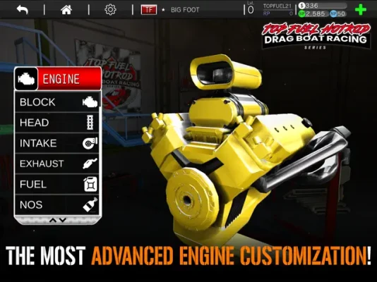 Build your engine the way you want to! TOP FUEL HOTROD features 100's of different part types resulting in unlimited combinations of ways to make your boat faster!