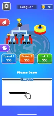 Super fun and thrilling spinning top battle game! Draw a blade for spinning top and fight the opponent! Claim fight money to upgrade speed, power and ink for blade of your spinner!