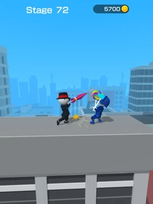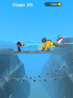 Weapons are made based on the images. Once you get the weapon, the battle begins! Tap at the right time to drop your opponent off the cliff!
