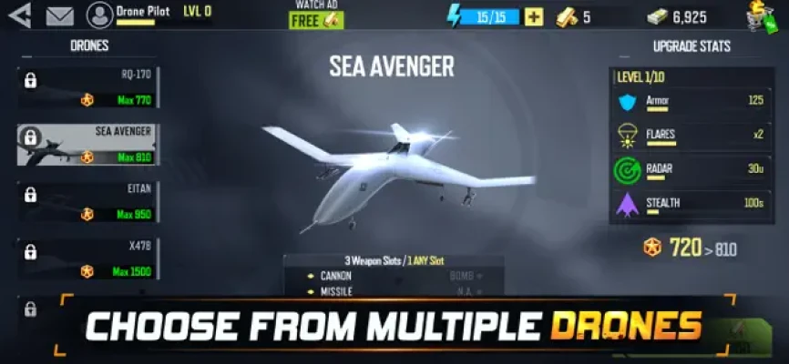 Take charge of world-class combat UAVs with the power to change the fate of humanity plunged into this dark era.Your vision and courage will shape mankind's future. Your exceptional abilities will become legendary. Success requires risk and bravado. Make the right choices on daring missions to protect, defend, gather gold and resources.
