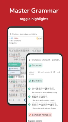 Find free lessons to help you learn Chinese with our wide variety of articles, stories, and courses designed for Chinese learners from beginner to advanced levels. Practice Chinese with pinyin, native audio, and translations with just a tap. Easily access our built-in dictionary, grammar explanations, and flashcards to help you learn Chinese more efficiently.