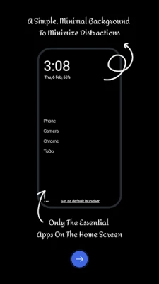 The cluttered home screen with numerous apps can lead to cognitive overload and distraction, increasing your screen time. Minimal Launcher aims to solve this by creating a streamlined home screen featuring only essential apps.
