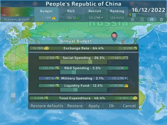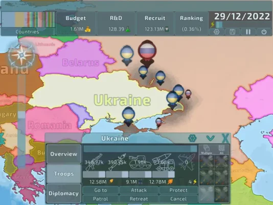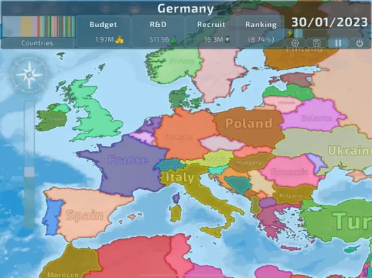 • Expand your territory by military occupation to gain more power, but do not spread too thin too fast or your empire will crumble even faster. • Analyze and manipulate diplomatic relations to invade countries while avoiding creating too many powerful enemies. • Use your country's resources to sustain your research and military campaigns, but if you spend too much your land will be impoverished and you will fall behind your rivals in the balance of power. • Determine your country's economic policy and reach a high economic growth, which might allow you to outpace your rivals in the power race even without using military force.