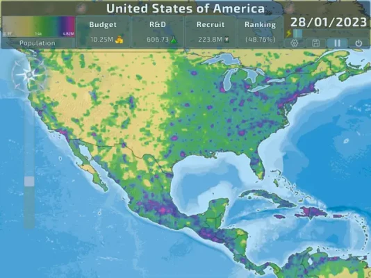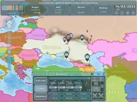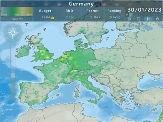 Geopolitical management game with organic borders and a streamlined gameplay.