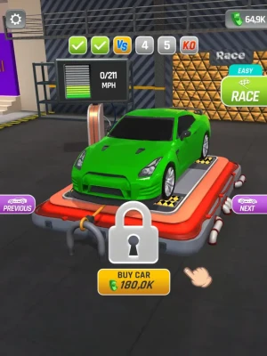 Tap and hold to rev up your engine and generate income, but be careful! Your engine might overheat if you push it too hard. Release the throttle to cool it down and keep it running smoothly. Use the income you generate to upgrade your car and unlock new vehicles.