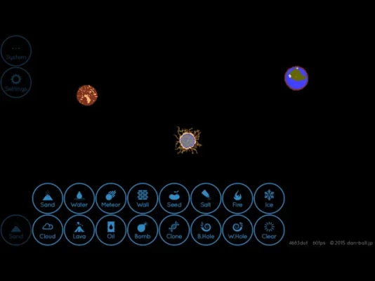 There are various dots of sand, water, seeds, lava, and more. Be creative. It's up to you!