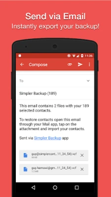 ✔️ Export your contacts - you can easily send a backup .vcf file of your contacts book to any email address!