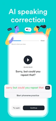 Dive straight in! Master English with casual 5-minute daily sessions. Learn through engaging dialogues, step-by-step, at your own pace. Practice conversations with an AI partner in lifelike scenarios - from the simplest coffee order to acing a job interview. Get comprehensive feedback on your pronunciation, fluency, grammar, and more.
