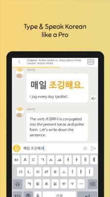 It’s a fun chat Korean app that allows you to practice your speaking, reading, listening, and Korean writing skills… all by chat. Get started by chatting with your personal chatbot tutor, Lanny, and get access to 550+ Korean lessons, whether it’s Korean for beginners or advanced language learners. With Lanny in your pocket, you can learn Korean online anytime, anywhere!