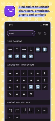 Fast search experience: Type any word or keyword and Ejimo will show you all the matching emoji and symbols.