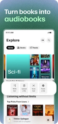 Upload documents, paste text, open web links, or import files — then sit back as ElevenReader turns them into rich audiobooks.